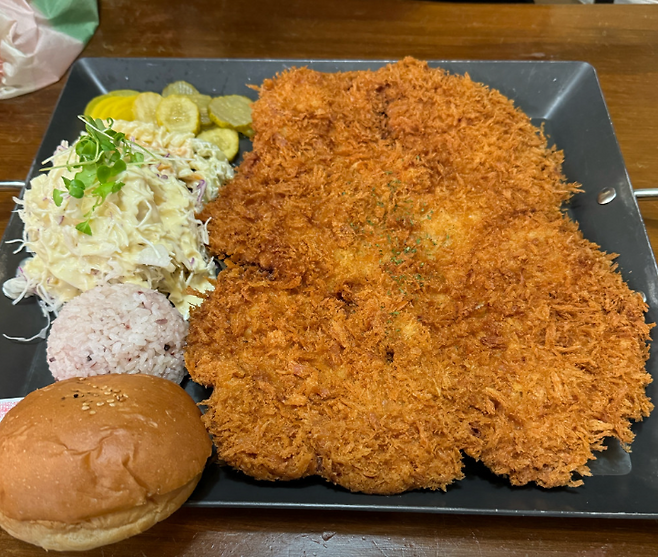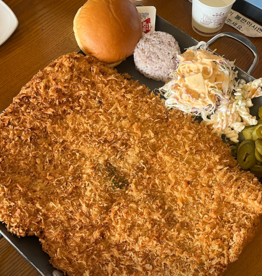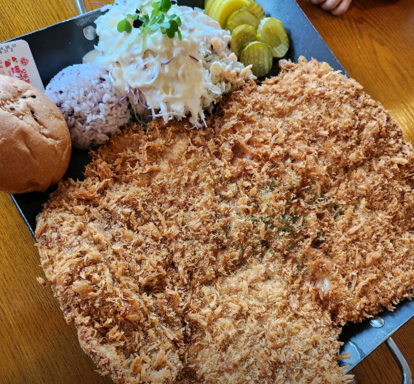 “지금까지 본 돈까스 중 제일 큼”이 말이 절로 나오는 크기입니다.