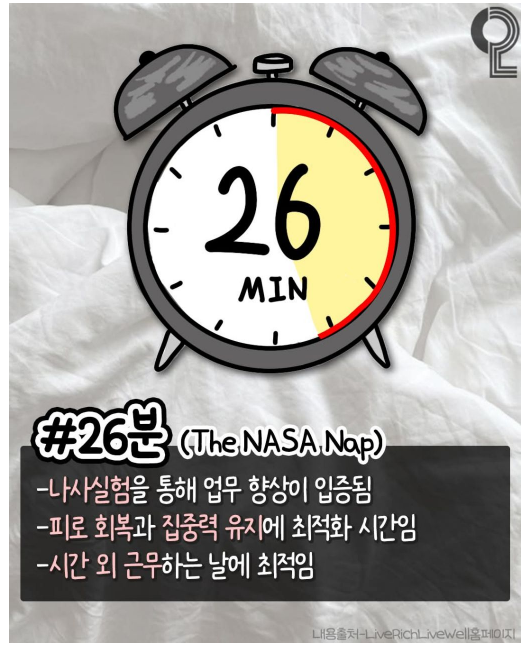💡 NASA 연구에 따르면 26분 낮잠을 잔 조종사들의 업무 집중력이 34% 증가했어요!