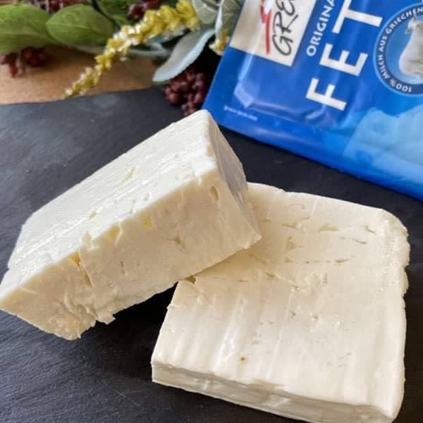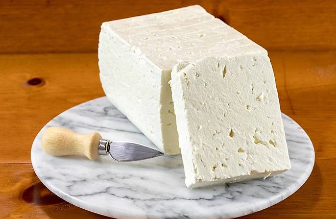 짭조름하면서도 부드럽게 부서지는 질감이 매력인 페타 치즈! 그리스 샐러드의 주인공이기도 하죠.