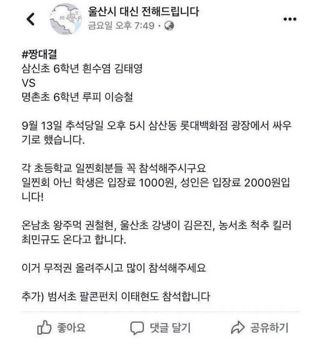 울산 초딩 현피 레전드