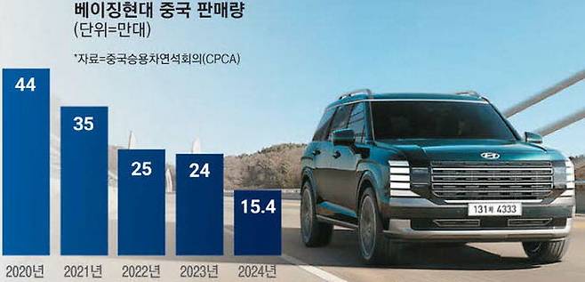 한편 현대차의 중국 시장 판매량은 사드 사태 직전인 2016년 이후 내리막길을 걷고 있다. 2016년 현대차의 중국 판매량은 114만여 대에 달했지만 작년에는 15만4000여 대에 그친 것으로 추산된다.