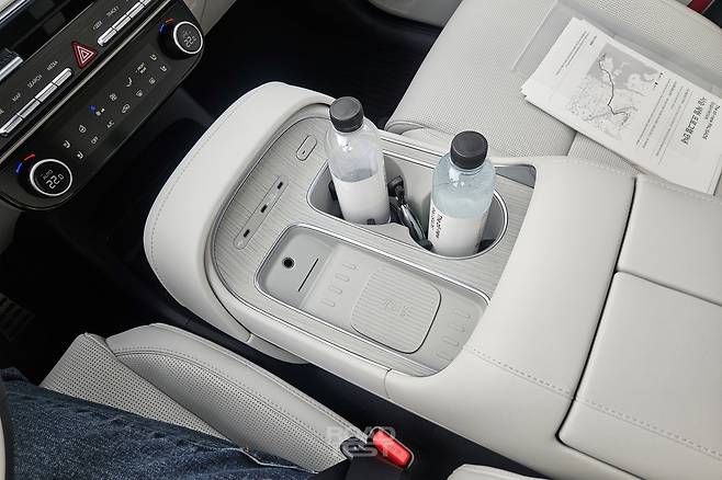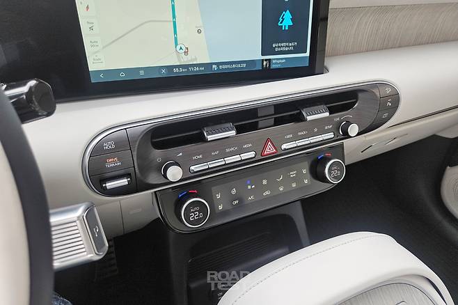스티어링 휠 디자인은 싼타페와 같다. 그 뒤로 기어레버가 들어갔는데, 이번엔 시동 버튼까지 변속기 칼럼에 이식했다. 기아의 모델들과 다르게 공조장치와 미디어 기능을 분리해 직관적으로 배치한 부분도 마음에 든다. 시승차는 7인승으로, 9인승과 달리 센터콘솔이 움직이지 않는다. 다만 콘솔과 대시보드 사이 거리가 너무 좁아 수납공간을 활용하기가 까다롭다.