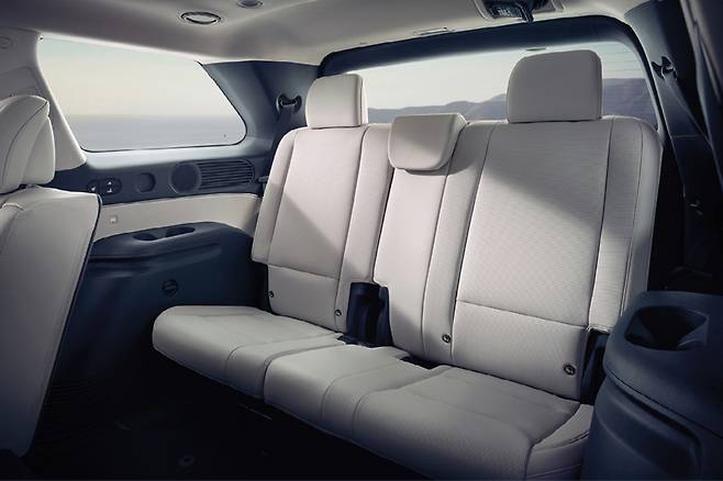몸집을 키우면서 3열 헤드룸(+4㎜)과 레그룸(+17㎜)도 늘었다. 하지만 실질적으로 체감하긴 어려운 수준. 기본적으로 한 덩치 하는 탓에, 1시간 이내 정도는 앉아서 이동할 만한 공간이 나온다. 시트 리클라이닝과 슬라이딩은 무려 전동식으로 조절할 수 있다. 쿠션은 최대 110㎜ 앞으로 이동할 수 있어, 3열 시트를 펼치고도 최대 348L의 트렁크 공간을 확보할 수 있다. 2열 시트 뒤 용량은 729L