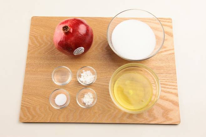 석류 1개, 달걀 흰자 4개, 설탕 200g, 레몬즙 1작은술, 소금 2g, 베이킹파우더 2g, 전분 2g