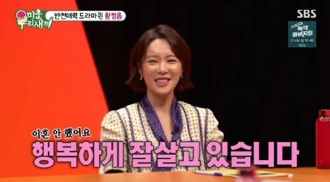 황정음은 이혼 위기를 극복하고 재결합을 선택했다고 말하며 "그래도 예전에 내가 싫어했던 행동은 남편이 조심해주고 나도 아무래도 아직 마음이 남아 있었으니까 둘이 다시 합친 거 같다"고 전했습니다.