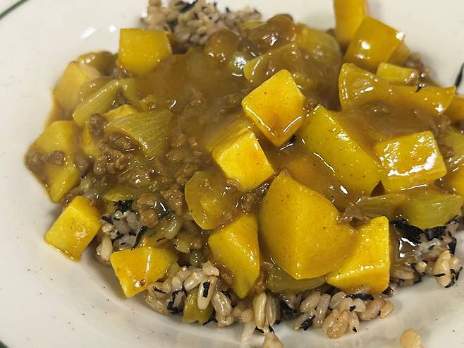 감칠맛 끌어올리는 카레 맛의 비법, 바로 "사과"입니다. 사과는 당분과 유기산이 있어 카레의 느끼함은 줄이고 감칠맛과 산뜻한 단맛을 더해줍니다.