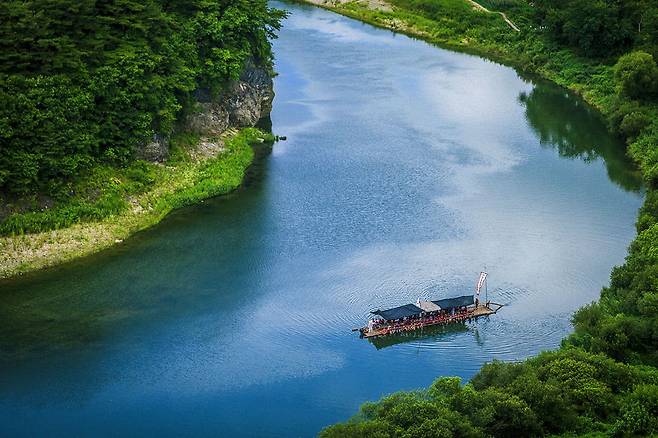 평창강 물줄기가 만든 한반도 지형에서 출발하는 뗏목 체험인데요. 한반도 지형에 관심 있다면 꼭 함께 방문해야 할 곳으로, 동해안과 서해안을 오가는 1km 코스로 뱃사공의 화려한 입담과 함께 즐길 수 있습니다.