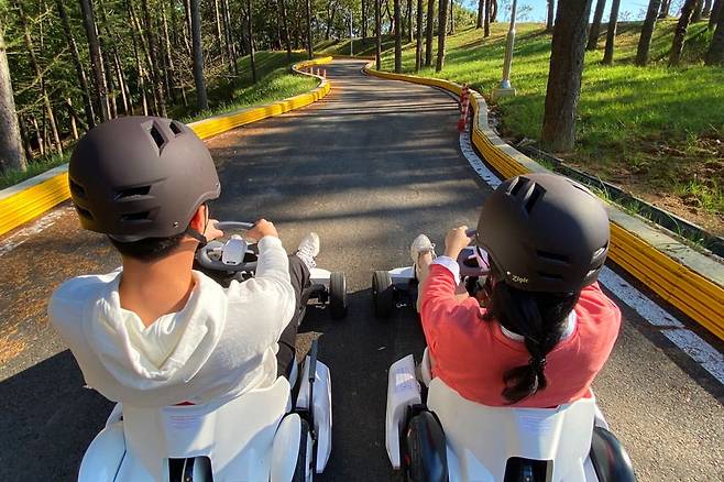 속도 최대 40km까지 가능한 내리막길 코스에서 소나무 숲을 만끽해 보시길 바랍니다.