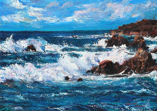 묵직한 붓터치가 느껴지는 김애란 작가님 그림을 보고 있자니 초여름 마음까지 시원해지는 것 같아요. 그림의 아름다움이 보는 사람들에게 행복을 주는 그림, 마음을 쓰다듬는 그림을 그리고 계십니다. 2023년까지 7년동안 부산국제화랑아트페어(BAMA)에 참여하신 베테랑 작가님이십니다.