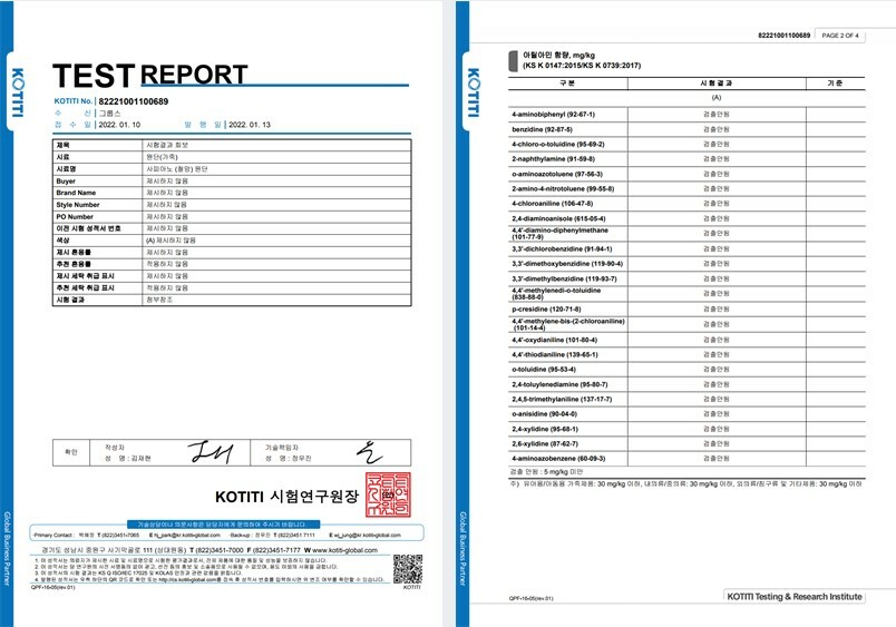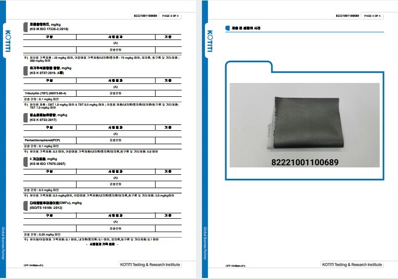 🔻 사피아노 원단 통과 인증서