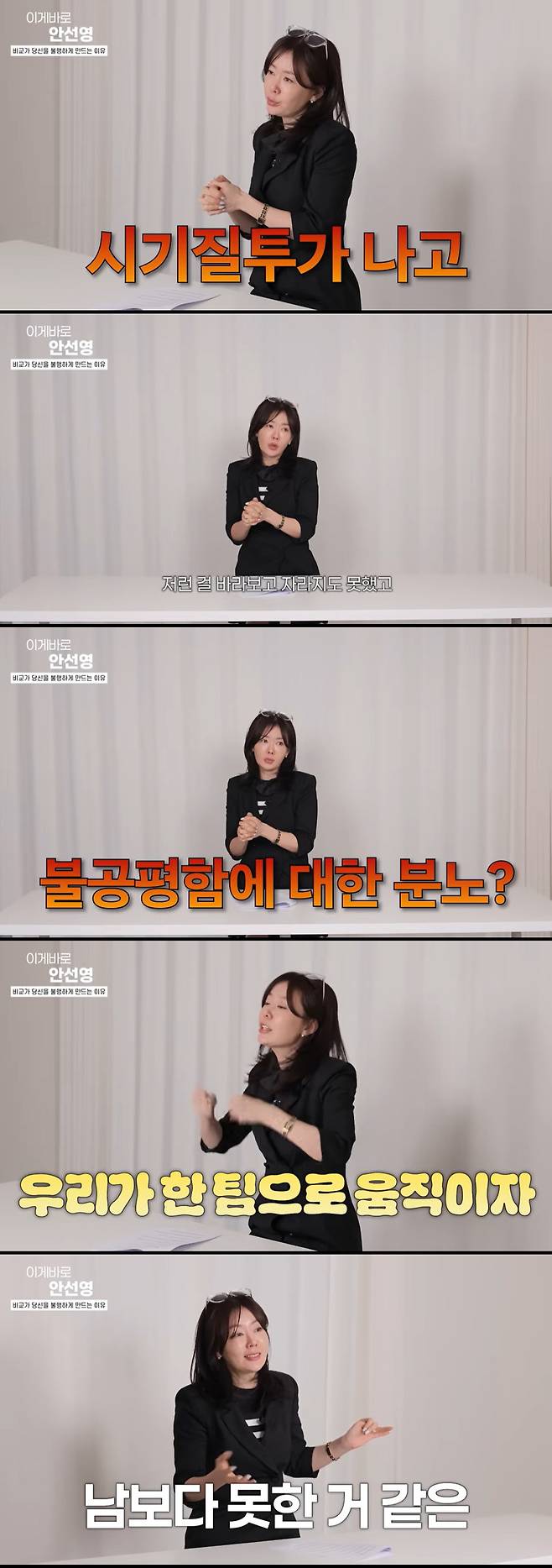 안선영은 "저런 걸 바라보고 자라지도 못했고 우리 엄마는 본인의 실패한 결혼 생활, 본인이 일찍 과부가 된 것에 대한 원망과 화풀이를 어린 나한테 해댔을까? 라는 세상의 불공평함에 대한 분노가 있었다"며 "어찌됐든 내가 스스로 가정을 이뤘는데 내가 늘 부족했고 그래서 더 간절히 원했던 화목하고 다정한 부부의 모습으로 나는 왜 살지 못하는가? 이런 것들이 굉장히 저를 불행하게 만들었다"고 고백했다.