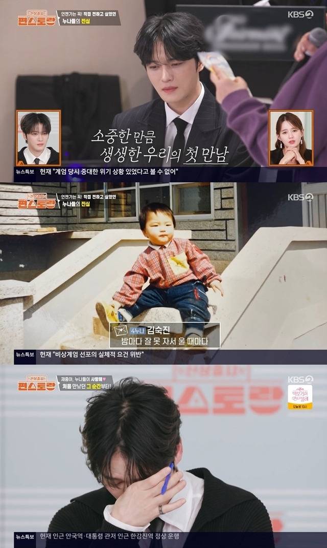 김재중이 처음 입양돼 집에 왔을 때의 기억이었다. 그 말에 테이블 위의 웃음도, 젓가락 소리도 멈췄다.