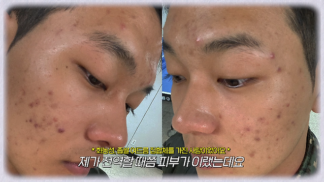 이사람 초 민감한 피부에 화농성, 좁쌀 여드름 집합체였는데