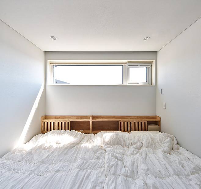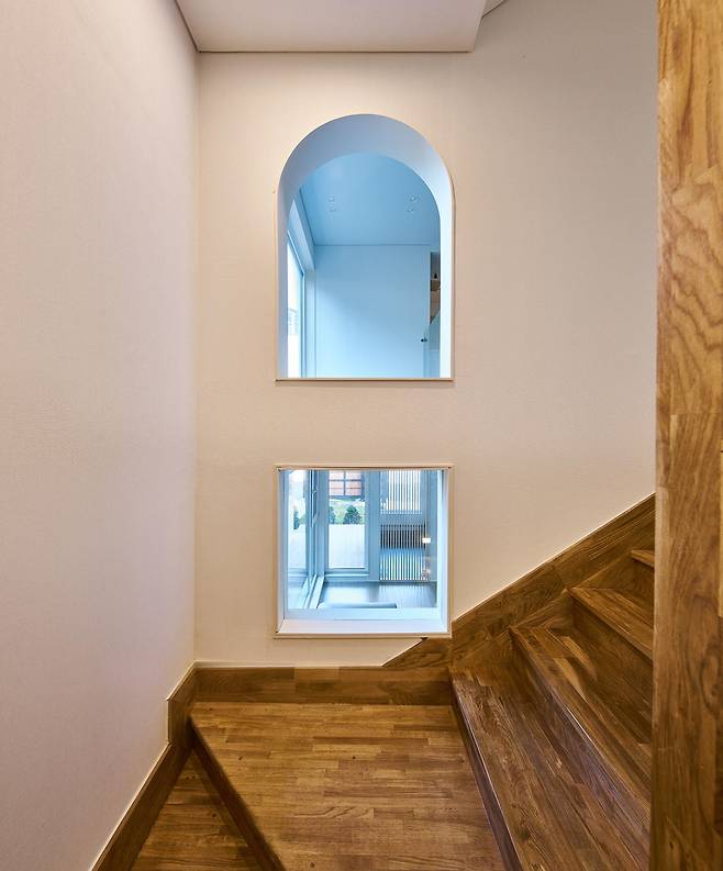 건축방향을 정해가던 중 고시된 성장관리계획은 대지에 새로운 가능성을 부여했다. 기존에 계획했던 지하층이 지상으로 올라가면서 내부의 시각적인 연결이 가능해졌고, 덕분에 아이들은 높이에 따른 시선 제약 없이 자유로운 동선과 공간을 누릴 수 있다.