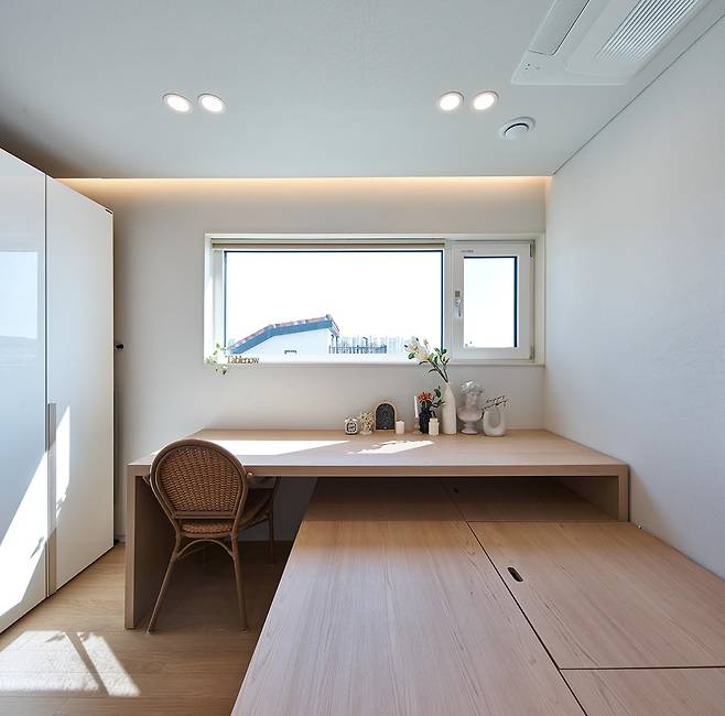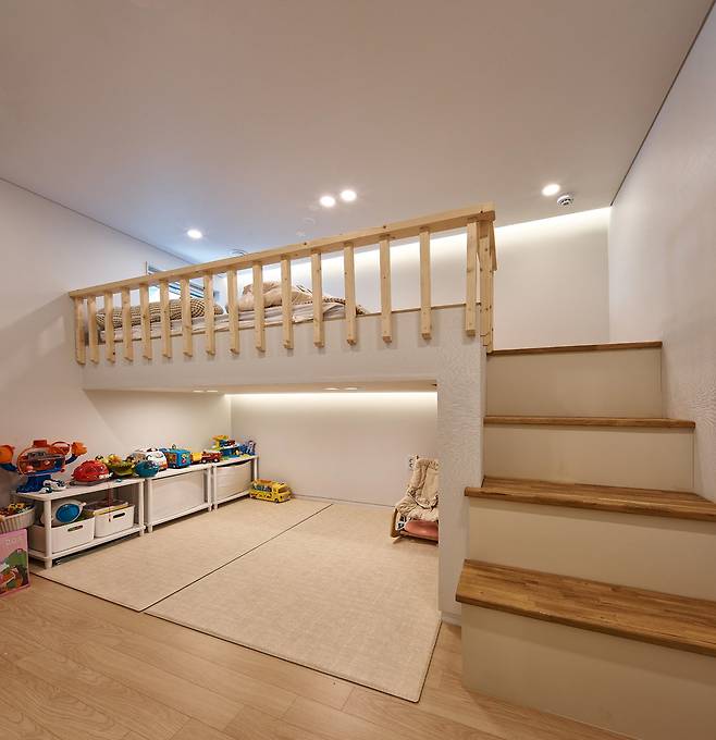 내부에서도 다양한 외부활동을 즐길 수 있도록 가득 채우기보단 덜어낸 공간, 테라스에선 온 가족이 지붕 너머 하늘을 바라보며 도심 속 온전한 휴식을 취한다.
