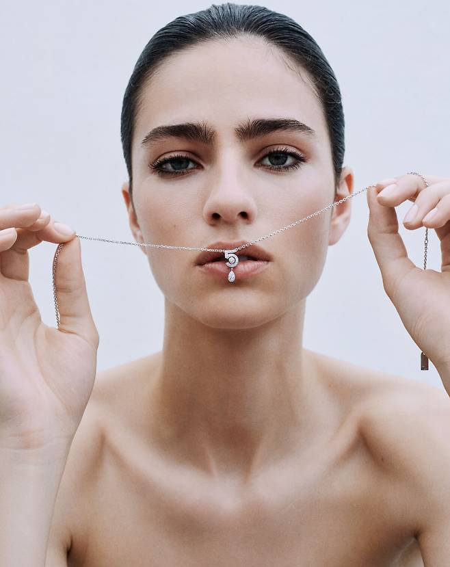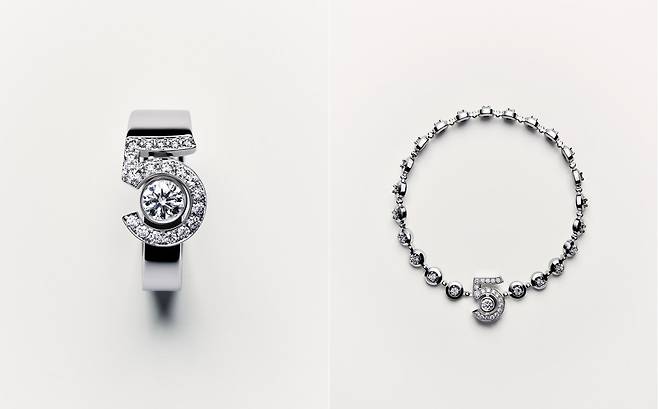 1921년 조향사 에르네스트 보가 탄생시킨 샤넬의 상징적 향수, N°5. 가브리엘 샤넬이 다섯 번째 향수 보틀을 선택하면서 숫자 5는 샤넬 하우스에 더없이 특별한 의미를 지니게 되었다. 2021년에는 N°5 향수 탄생 100주년을 맞아 특별한 하이 주얼리 컬렉션을 출시했고, 이를 바탕으로 다채로운 주얼리를 지속적으로 선보이고 있다. 올해도 하우스의 창조적 세계에 끊임없이 영감을 불어넣는 N°5를 모티브로 한 새로운 주얼리 컬렉션을 공개했다. 이번 N°5 주얼리 컬렉션은 1932년 가브리엘 샤넬이 완성한 ‘비쥬 드 디아망(Bijoux de Diamant)’ 하이 주얼리 컬렉션의 혁신적이고 대담한 창조 정신을 계승했다. 옐로∙베이지∙화이트 골드 세 가지 소재의 길이 조절이 가능한 네크리스와 브레이슬릿으로 구성했으며, 기존 N°5 브레이슬릿과 링, 옐로 골드 버전의 싱글 이어링도 함께 출시했다. 숫자 5 모티브 중앙에는 각각 0.30캐럿 브릴리언트 컷 다이아몬드를 세팅했으며, 1932년부터 이어져온 샤넬의 시그너처 기법인 클로즈드 세팅 방식으로 완성했다. 2.55 백의 잠금장치에서 영감받은 브레이슬릿의 인비저블 잠금장치부터 N°5 향수 방울을 형상화한 네크리스의 다이아몬드 드롭 디테일, 향수 보틀 형태를 구현하기 위해 미러 폴리싱 기법으로 베벨 처리한 N°5 모티브의 아우트라인까지 하우스의 상징적 코드가 어우러져 샤넬 주얼리의 독보적 미학을 드러낸다.