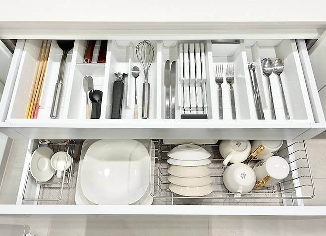 그 아래로 자주 쓰는 식기를 정리해 뒀어요 :)
