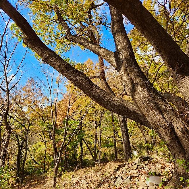 저희 집 뒷산이에요. 저번 주말에 고등학교 동창들이 집에 놀러 왔는데 창밖으로 예쁘게 물든 단풍을 가까이 보고 싶어 함께 산에 오르던 길에 찍어둔 사진이에요. 돈으로 살 수 없는 귀한 것들을 맘껏 누리며 살고 있어요 :)
