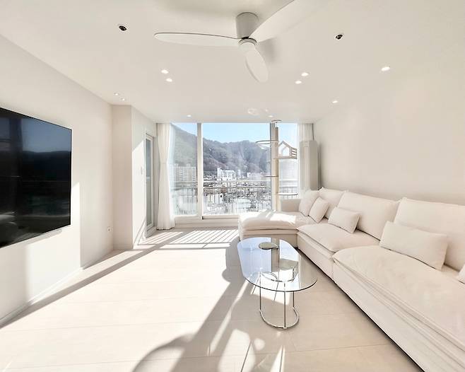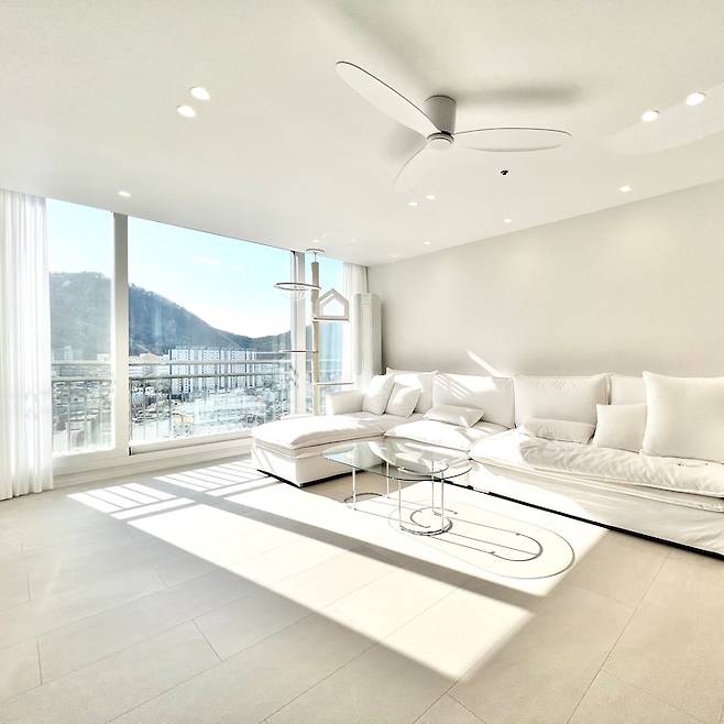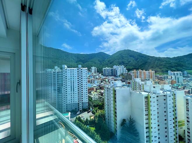 낮에는 소파에 누워 산과 하늘을 보며 힐링하고, 밤에는 저 많은 아파트들의 반짝이는 불빛을 보며 힐링해요.