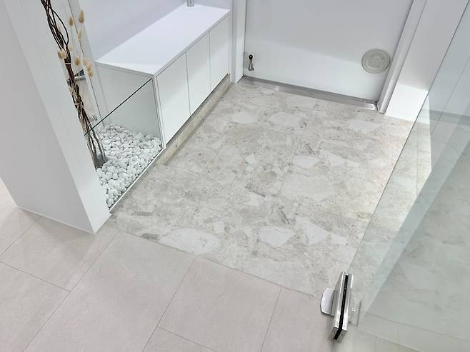 실제 색상과 가장 비슷한 사진이에요. 그레이 빛이 도는 아이보리라 고급스러운 느낌입니다. 그리고 최고의 장점은 더러워져도 표시가 잘 안나요. 현관 청소는 일주일에 한번 쓸고 닦는데 청소 전후 차이가 거의 없답니다. 너무 좋죠? ^^