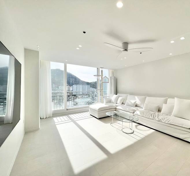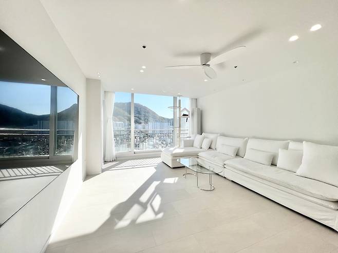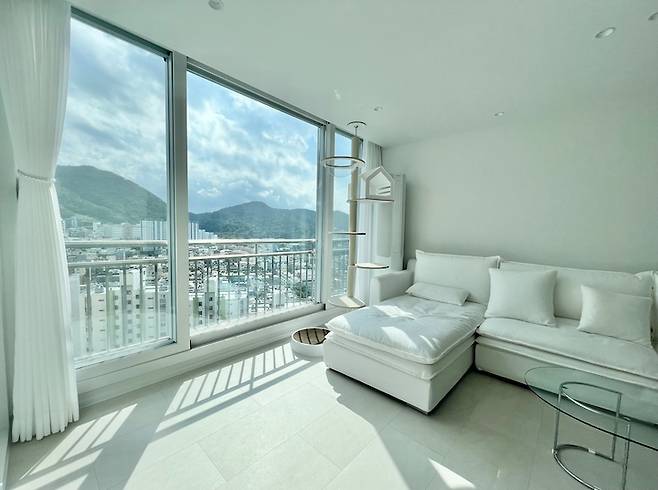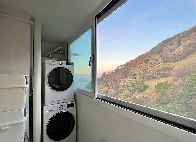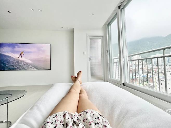 낮에는 소파에 누워 산과 하늘을 보며 힐링하고, 밤에는 저 많은 아파트들의 반짝이는 불빛을 보며 힐링해요.