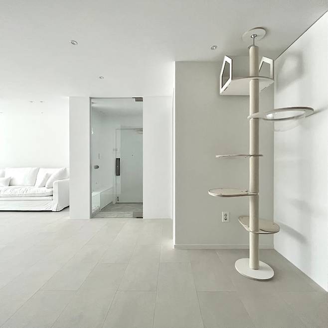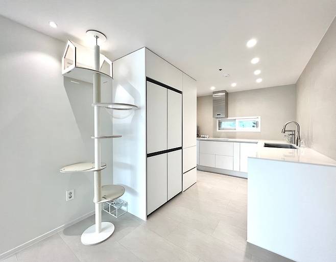 창가에 캣타워를 두어 모모가 햇볕도 쬐고 새들도 구경할 수 있게 했어요. 모모는 창밖 구경하는 것도 좋아 하지만 저를 구경하는 걸 더 좋아해서 제가 소파 카우치에 누워 있으면 바로 위 캣타워에서 저를 구경 한답니다 :) 모모가 사용하는 캣타워는 오브바이포 상품입니다. 캣타워가 너무 이뻐서 제가 후기를 마구마구 남겼더니 오브바이포 홈페이지의 베스트 리뷰가 되어 있더라구요 ㅎㅎ