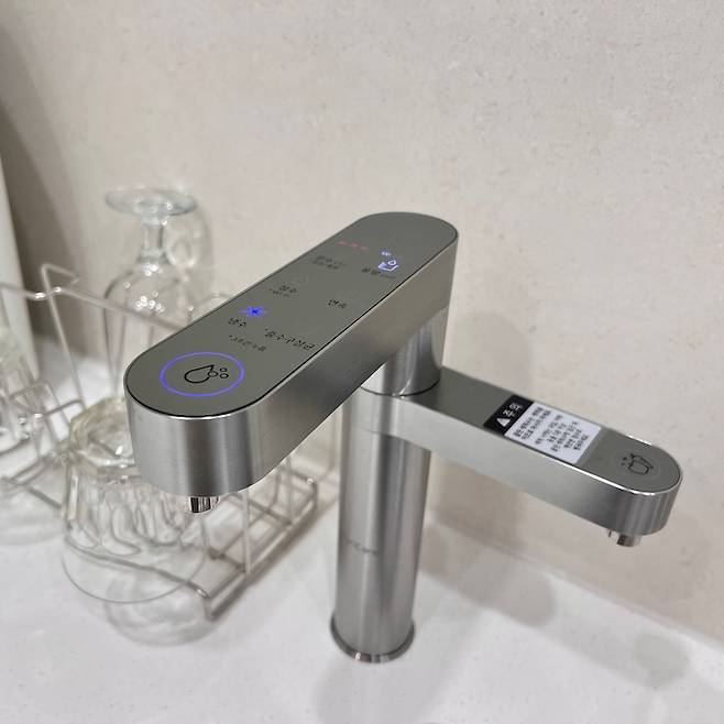 정수기는 LG 퓨리케어 정수기 매립 설치했어요. 정수기를 매립하면 싱크대 위로 공간을 차지하지 않아 미관상 이쁘고, 컵을 내려 놓고 120ml, 250ml, 500ml 자동으로 선택 할 수 있어 편리하고 효율적이에요. 그리고 정수기 스스로 출수구를 자동 살균 해 줘서 위생적으로 사용할 수 있답니다.