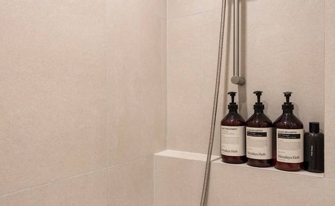 젠다이를 욕조 있는 곳까지 제작 하면 별도의 코너 선반이 필요 없어 깔끔한 욕실을 유지 할 수 있답니다 :)