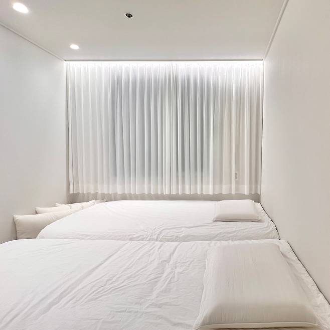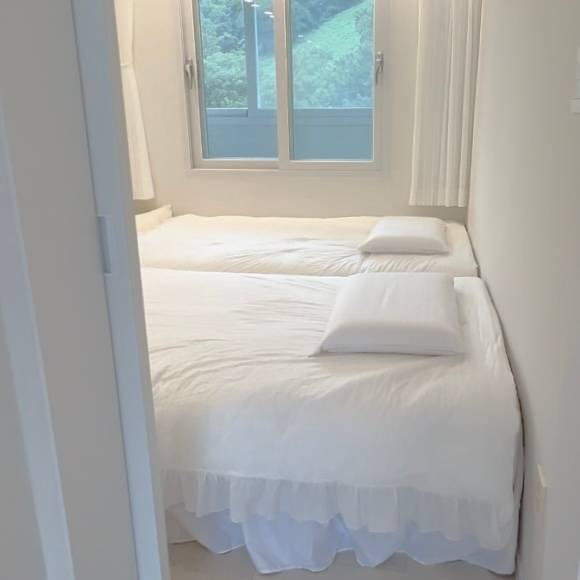 저희 부부는 생활 패턴이 달라 침실엔 슈퍼 싱글 두 개를 넣었는데 덕분에 함께 있지만 서로 방해 없이 푹 잘 수 있습니다. 침대만 넣어도 공간이 꽉 차고 잠만 자면 되는 공간이라 침대 말고는 정말 아무~~~것도 없어요. 침대는 돌레란 누베 침대인데 매트리스 강도를 선택할 수 있어요. 저는 소프트 메모리폼, 허리가 좋지 않은 남편은 미디움 메모리폼으로 구입했습니다. 남편과 저는 낮은 베개를 선호하는 편인데 이 베개 정말 정말 편해요.