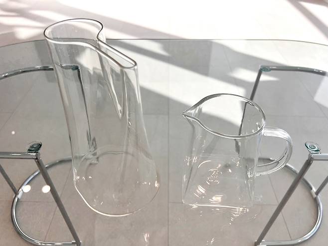 저는 그릇에 큰 욕심이 없는 편인데 투명한 유리제품이나 거울로 만든 제품들은 좋아해요. 반짝 반짝 이쁘잖아요^^ 제가 애정 하는 왼쪽 물병과 오른쪽 피쳐 입니다. 물병은 이케아에서 구매 했는데 쉐잎이 정말 이쁘죠? ^^ 원래 용도는 물병이 아니고 화병이에요. 저희 다이닝 테이블 위에 두고 물병으로 쓰면 좋을 것 같아 보자마자 겟! 했습니다.