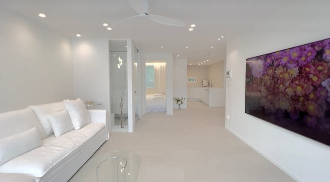 침실에서 바라본 거실의 모습입니다. 제가 살고 싶었던 집은 이 사진과 닮았어요. 새벽처럼 고요해서 분주한 제 마음도 차분해지네요.