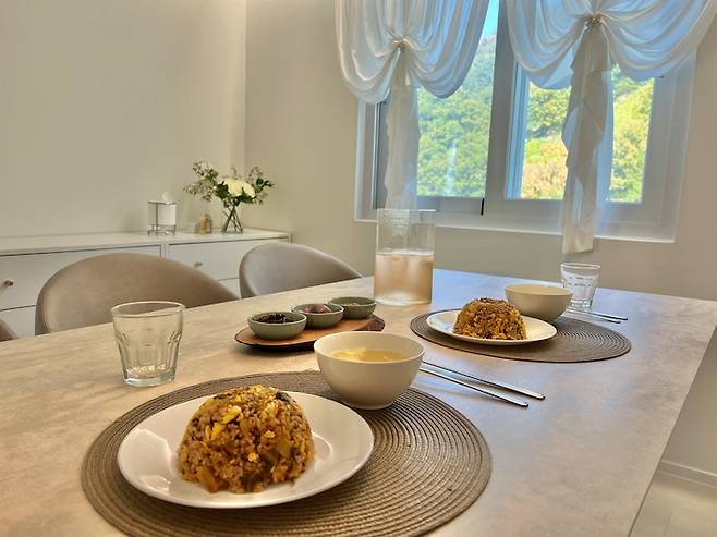 남편이 좋아하는 계란 김치 볶음밥을 만들었어요. 여름엔 새소리 가을엔 풀벌레 소리가 들리고 창밖을 바라보며 자연과 함께 하는 식사는 찬이 없어도 명품 식사로 업그레이드 된답니다 :)