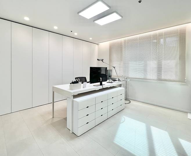 안방은 공간이 넉넉 했기에 다용도로 사용 가능해요. 현재는 서재와 드레스룸 파우더룸으로 사용하고 있지만 그래도 한켠에 공간이 남아서 컴퓨터 앞에서 오랜 시간 일하는 남편을 위해 안마의자를 두면 좋겠다 생각하고 있어요. 열심히 일한 후 좋아하는 음악을 들으며 안마의자에서 휴식을 취하는 거 모든 남자들의 로망 아니겠어요? ^^