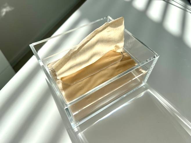 아크릴로 예쁘게 제작된 이 티슈박스와 그 안에 티슈는 무인양품 제품입니다 :)
