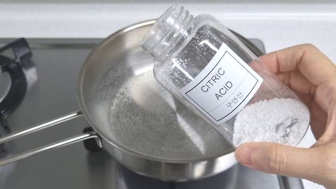 먼저 뜨거운 물에 구연산(또는 식초) 넣고 잠깐 동안 끓여준 다음