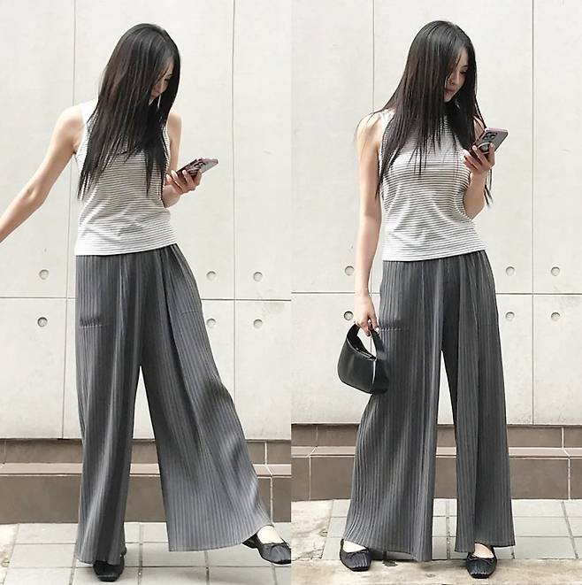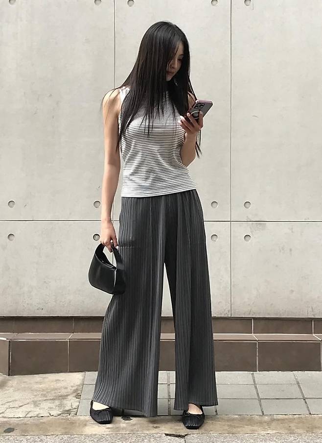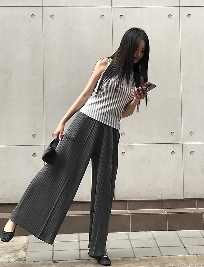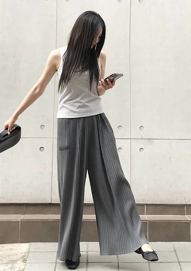 공개한 사진에서 정혜성은 긴 생머리에 핀 스트라이프 민소매 티셔츠와 와이드 핏 핀 스트라이프 팬츠를 착용한 파워풀한 섬머룩으로 한결 성숙해진 여성미를 노출했다.