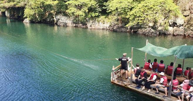 과거에는 투명 카약이 운영되었으나, 현재는 자연 보호를 위해 나무 카약과 제주 전통 뗏목인 테우가 주로 사용되고 있습니다.