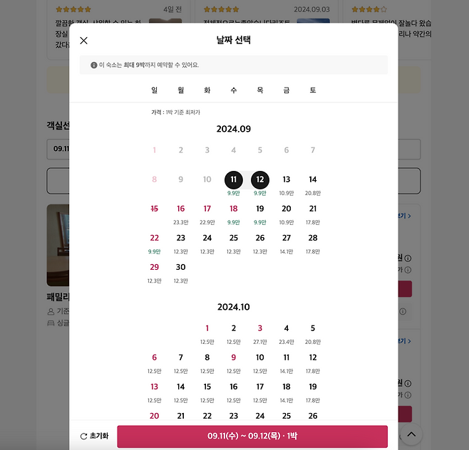 이번 패키지는 2024년 9월에 한정적으로 제공되며, 추석 연휴 기간은 제외한 평일에만 이용 가능합니다. 야놀자 예약 앱에서 확인해 본 결과, 99,000원 패키지는 9월 12일, 13일, 18일, 19일, 22일에 이용 가능하고, 14일과 20일 금요일에는 109,000원에 이용할 수 있었습니다. 이 외의 날짜에는 패키지가 아닌 룸온리 최저 가격으로 예약할 수 있으니 참고하시기 바랍니다.