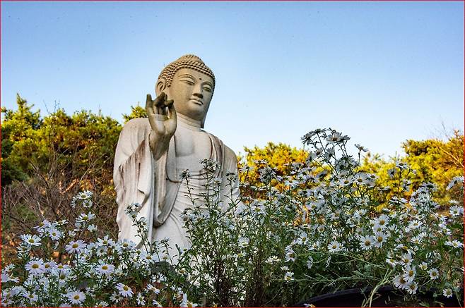 장군산의 단풍이 물들기 전, 지금 영평사에는 하얀 구절초가 산을 덮고 있습니다. 꽃향기와 염불소리, 청량한 바람이 어우러진 풍경 속에서 가을의 깊이를 천천히 느껴보세요.