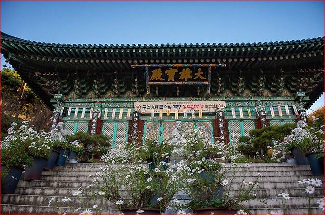 경내에는 단아한 전통 건축미를 지닌 대웅보전을 비롯해 삼성각, 적묵당, 오 층 석탑 등이 고요하게 자리하고 있습니다. 봄에는 겹벚꽃이, 가을에는 구절초가 절 안팎을 가득 채워 사계절 모두 꽃이 피는 사찰로도 유명합니다.