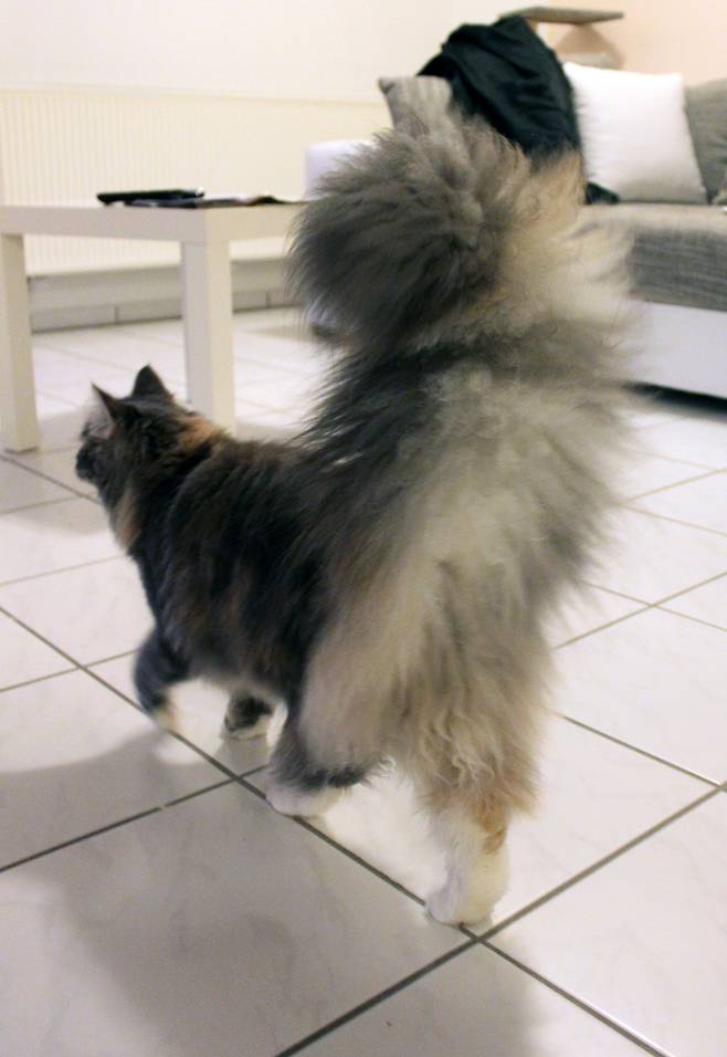 또한, 메인쿤은 꼬리를 포함한 몸길이가 약 100cm 정도 되고, 털이 풍성해 실제 체구보다 더 커 보여 중형견과 비슷해 보인다고 합니다.