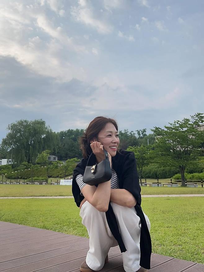 군더더기 없이 정제된 컬러 조합과 실루엣은, 40대 여성들의 현실적인 꾸안꾸 패션 롤모델로 손색없다.