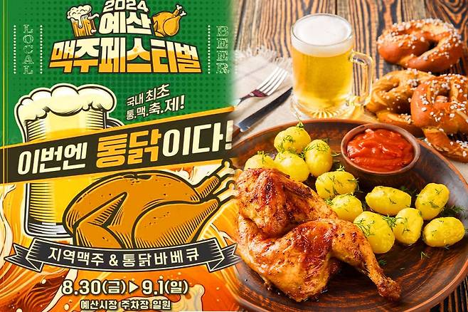 예산 통맥축제는 국내 최초 통맥축제로 어나더클래스로 준비한 맥주짝꿍 안주들이 대기 중입니다. 올해의 기대 포인트는 지역 맥주와 함께 즐기는 통닭과 바비큐인데요.
