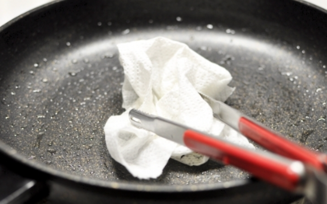 휴지나 키친타월로 기름을 먼저 닦아내면 더 효과적입니다