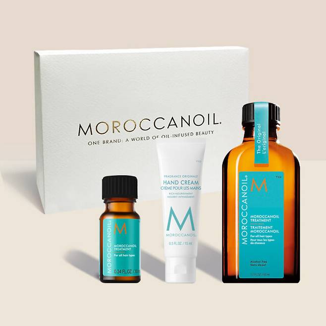 누구에게나 실패 없는 선물인 모로칸오일 트리트먼트 선물세트. 오직 카카오톡 선물하기에서만 만나볼 수 있는 단독 구성으로 '모로칸오일 트리트먼트 10ml + 핸드크림 15ml' 혹은 '모로칸오일 트리트먼트 10ml*2개' 증정품 중 선택하여 수령할 수 있어.