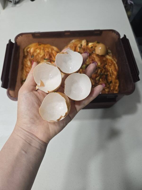 또한 계란껍질 속 칼슘은 김치의 미생물 활동을 억제해, 부패와 변질을 막는 데도 도움을 줍니다.