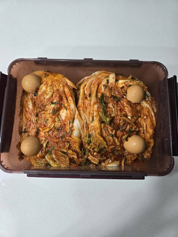 계란껍질과 함께 넣으면 김치 맛이 더 오래 유지됩니다.