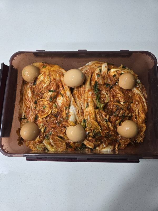 계란껍질과 함께 넣으면 김치 맛이 더 오래 유지됩니다.