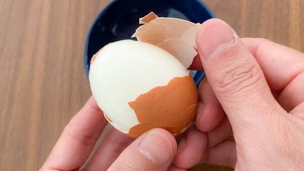 삶은 계란껍질을 바싹 말려주세요. 물기가 남아 있으면 오히려 김치가 변질될 수 있습니다.