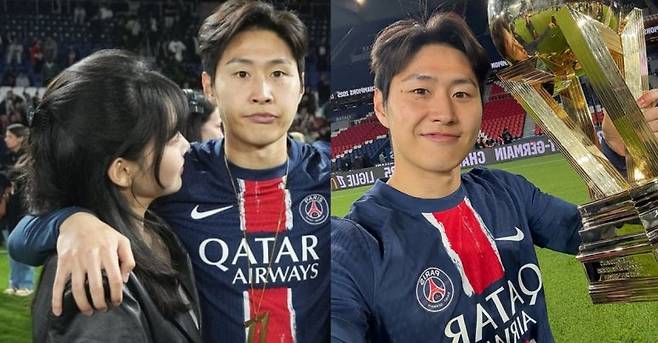 PSG 리그앙 우승 세레모니 속 이강인 연인 공개? 열애설 났던 두산 손녀 박상효 씨 추정 인물 공개돼